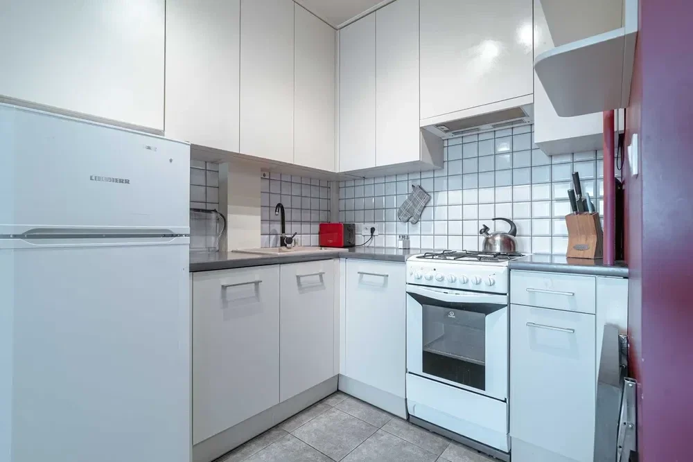 W pełni umeblowana kuchnia wyposażona jest w płytę gazową, piekarnik, okap oraz lodówkę.